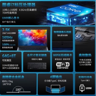 【新品上市】吾空凌云X15 酷睿i7-13620H全性能轻薄本15.6英寸超清屏笔记本电脑
