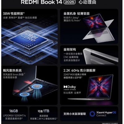 小米Redmi Book 14 2025 英特尔酷睿轻薄商务笔记本办公商务电脑